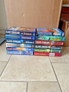 Lot of 12 HC books by CLIVE CUSSLER - SOME Dirk Pitt, KURT AUSTIN Novel Series
