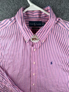 Lauren Ralph Lauren Button Up Shirt Adult 18 34/35 Pink Striped Long Sleeve Men