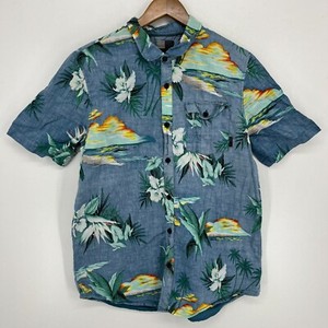 O'Neill Short Sleeve Button Shirt Men's M Blue Floral Hawaiian Collared Pocket