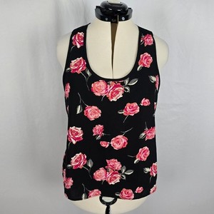 Xhiliration Swing Tank Women's XXL Black Pink Floral Scoop Neck Sleevelese NWT