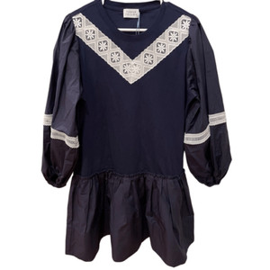Tanya Taylor Dress Womens L Kirstie Mini Shift Navy Blue/White Lace Americana