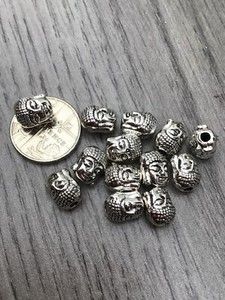 9mm Buddha Head Beads in Tibetan Silver 2mm Threading Hole