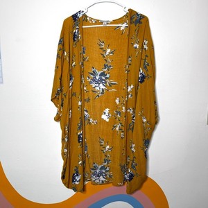 Moral Fiber Floral Kimono Cardigan Yellow Size L Oversized Boho Cover Up