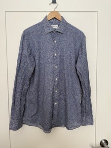 Khakis of Carmel Shirt Mens Sz 16.5/42 Blue Floral Long Sleeves Button Up Italy