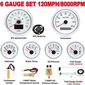 6 Gauge Set With Sensor 85mm GPS Speedometer 120MPH&Tacho 8000RPM Gauge for Boat