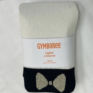 NWT Gymboree Girls Tights Black Cream Gold Bow Small 5 6