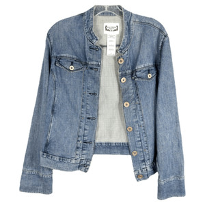 Isaac Mizrahi Medium Denim Jacket Navy Blue Hot Pink Accents Button Down 302