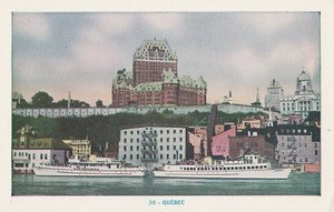 Quebec Waterfront and Skyline, Steamer passing the Chateau Frontenac/Citadel.