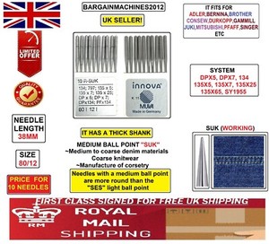 134;797; 135X5;135X7;DPX5;DPX7;SY1955 SUK S:80/12 INDUSTRAL SEWING MACHNE NEEDLE