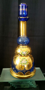 ARDALT LENWILE CHINA- JAPAN ORNATE COBALT BLUE W. RAISED FLOWERS GLASS DECANTER