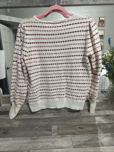 Loft Textured Striped Cream Ivory 100% Cotton Sweater Puff Sleeves Size Large