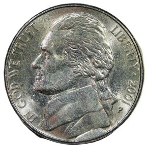 2001 P Jefferson Nickel error, obverse CUD die break, CU-5c-2001P-01