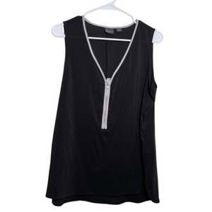 Covington Blouse Women's Petite Large Black Zip Tank Top Lightweight Shirt Solid