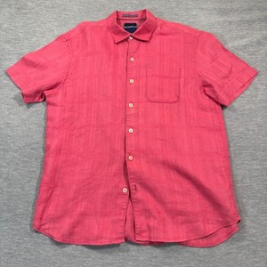 Tommy Bahama Shirt Men L Red Linen Button Up Short Sleeve Casual Island
