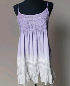 Y2K Babydoll Mini Dress Top Purple White Ombre Boho Festival Tiered Cottage Chic