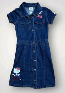 NEW Hello Kitty Snap Front Denim Jean Dress Jumper Sanrio Girls Overalls 5/6