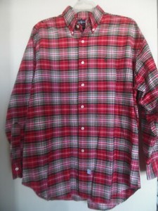 Vintage Ralph Lauren The Big Oxford Plaid Shirt Mens 10 Red Green Multi Check