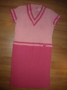 VTG 60S 70S WOMENS M MOD RETRO DISCO WOMENS PINK STRIPED ZIP TERRY SCOOTER DRESS