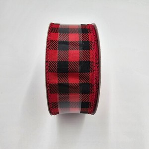 Celebrate It Wired Ribbon Black & Red Buffalo Plaid Check 2.5" x 20' NEW