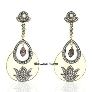 Natural Pave Diamond & Polki Diamond Earring Jewelry 925 Sterling Silver Jewelry
