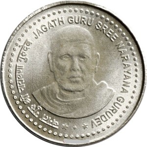 India Rs 5, Commemorative Coin on Jagat Guru Sree Narayan Gurudev, FSS