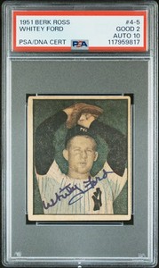 1951 Berk Ross Eddie (Whitey) Ford #4-5 PSA 2 Auto 10