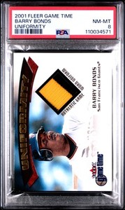 2001 Fleer Game Time Uniformity Barry Bonds PSA 8