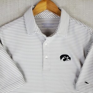 VINEYARD VINES x IOWA Mens Size Large Performance Polo Shirt Gray/White Golf