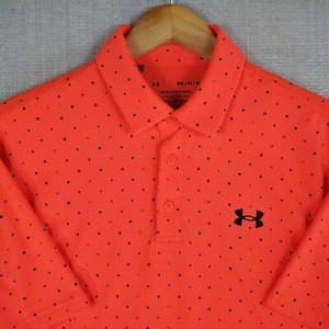 UNDER ARMOUR Size Medium Mens Fiery Orange Polo Shirt Hi-Viz Diamond Jacquard