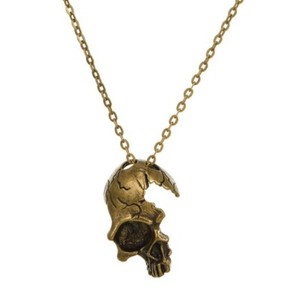 Broken Halve Skull Face Necklace Gold Metal Pendant Goth Dark Fantasy 50cm