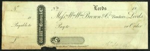 London Agents Brown Janson Cheque printed by Perkins Bacon and Co