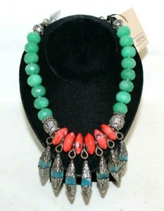 MASHA ARCHER SINGLE STRAND JADE BALL NECKLACE WITH CORALS & COIN STORY CARD NEW!