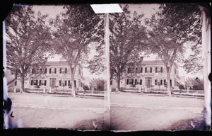 ANTIQUE GLASS NEGATIVE, FC PHILPOT, LIMERICK ME., STREET, LARGE HOUSE STEREOVIEW