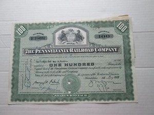 (1) MAY 5, 1955 PENNSYLVANIA RAILROAD COMPANY. STOCK CERTIFICATE, 100 SHARES