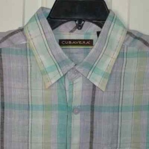 Cubavera Mens S/S Violet Green Linen Plaid Casual Resort Short NWOT - Size Large