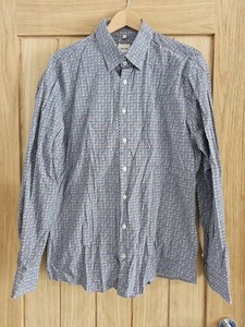 Folk 'Grader' Mens Medium (3) Long Sleeve Shirt Ecru Multi Rust Block