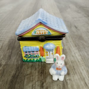 Porcelain Trinket Box Easter Village Flower Shoppe w/ Rabbit figurine