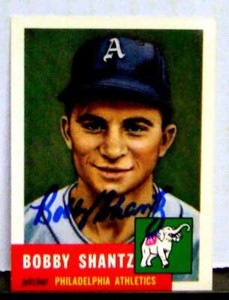 BOBBY SHANTZ SIGNED 1953 TOPPS ARCHIVES BASEBALL CARD A'S YANKEES 52 AL MVP
