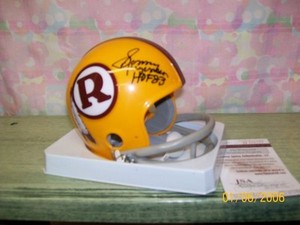 SAMMY BAUGH SIGNED T/B REDSKINS FEATHER M/H HOF63 RIP!