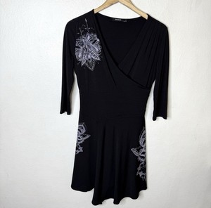 Desigual Alison Dress Women’s Medium Black Faux Wrap 3/4 Sleeve Mandala Stretch RM 147.27Was: RM 210.41