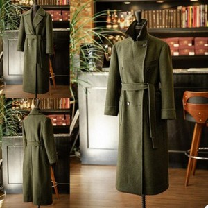 Men Overcoat Tweed Wool Overcoat Double Breasted Long Suits Herringbone Jackets