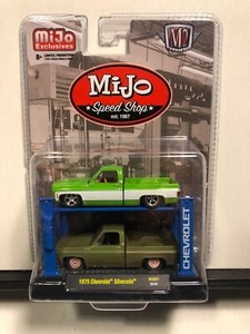 1/64 M2 AUTO LIFTS 2 CAR 1975 CHEVROLET C10 SILVERADO GREEN & WHITE & GREEN MIJO