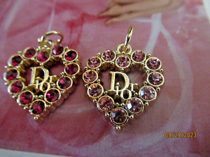 DIOR 2 ZIPPER PULL CHARM, PENDANT, GOLD tone metal PINK 24X20MM lot 2