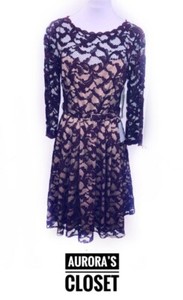 Eliza J 6 Dark Burgundy Lace Dress Fit Flare Long Sleeve Nude Lining Dress NWT