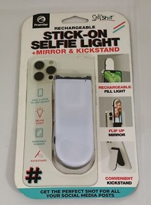 Selfshot Stick On Selfie Light Mirror & Kickstand 3 LED Modes Rechargeable NEW