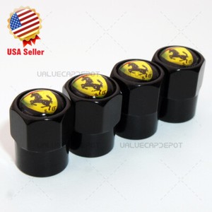 Black Hex Shape Ferrari S.p.A Logo Car Suv Wheels Tire Air Valve Caps Stem Cover