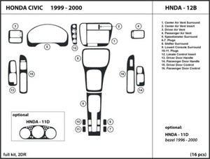 Real Carbon Fiber Dash Trim Kit for Honda Civic Coupe 1999-2000 Interior Overlay
