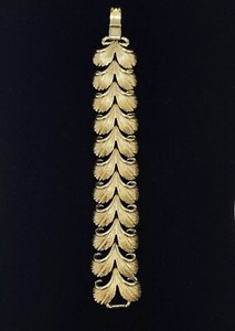 Vintage Signed LISNER Ginko Leaf Gold Tone Metal Link Bracelet 6 7/8” EUC
