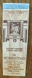 WOODGRAIN MATCHBOOK COVER: HOMESTEAD BBQ (BLUE ISLAND, ILLINOIS) -G27