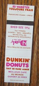 DUNKIN' DONUTS SHOPS MATCHBOOK COVER EMPTY MATCHCOVER FROM QUEBEC -E18